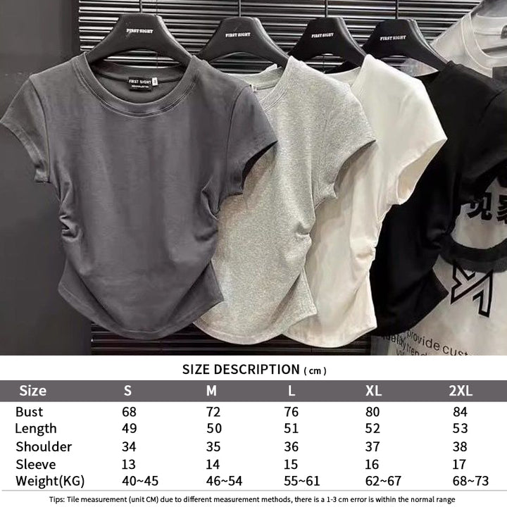 - Design: Cropped short sleeves with a round neck, embodying Korean minimalist fashion.
