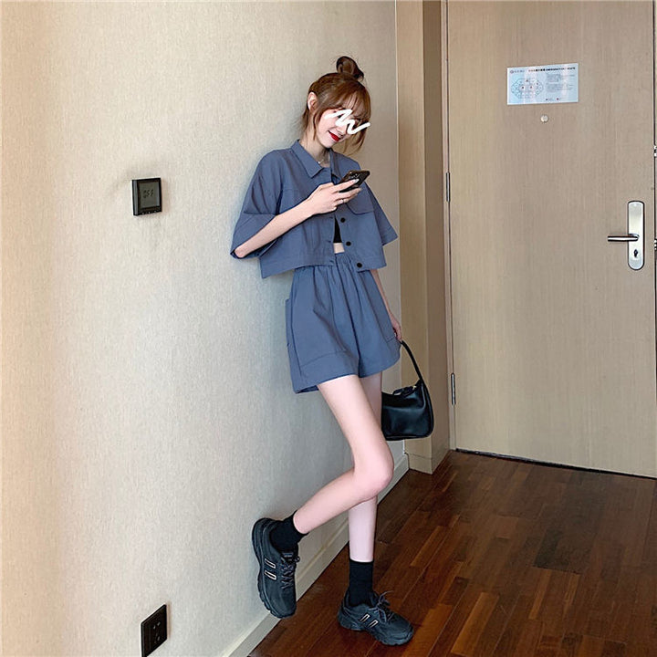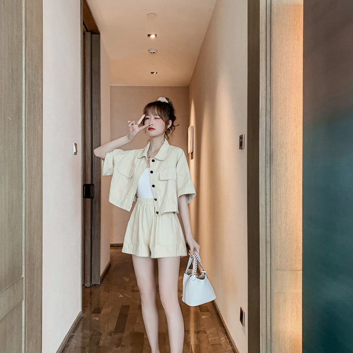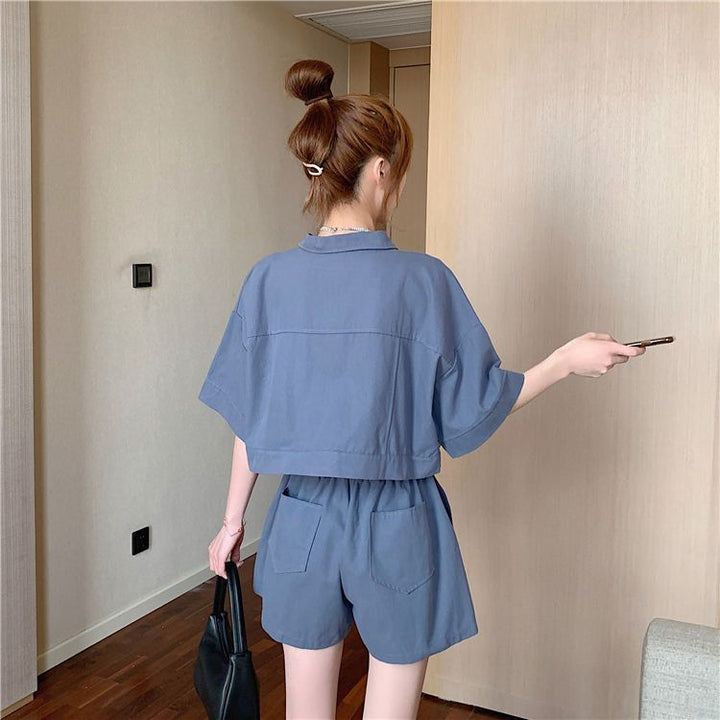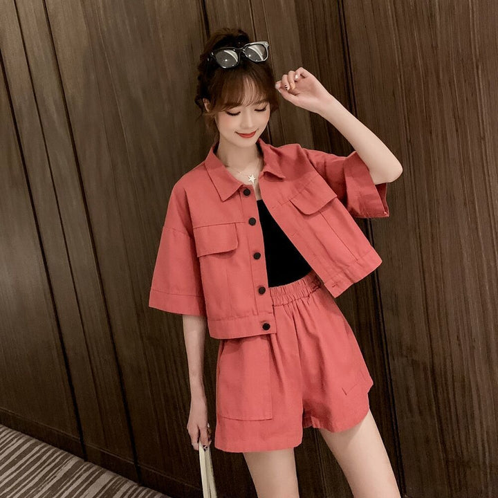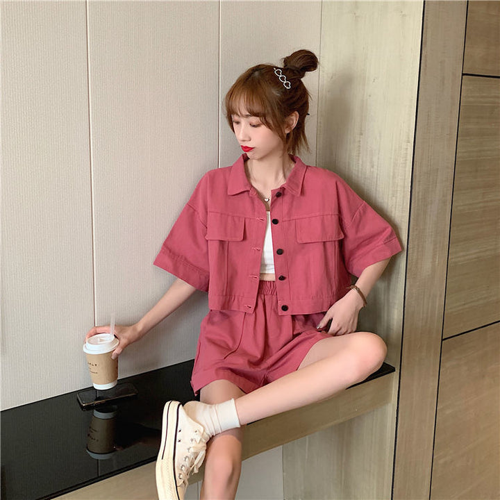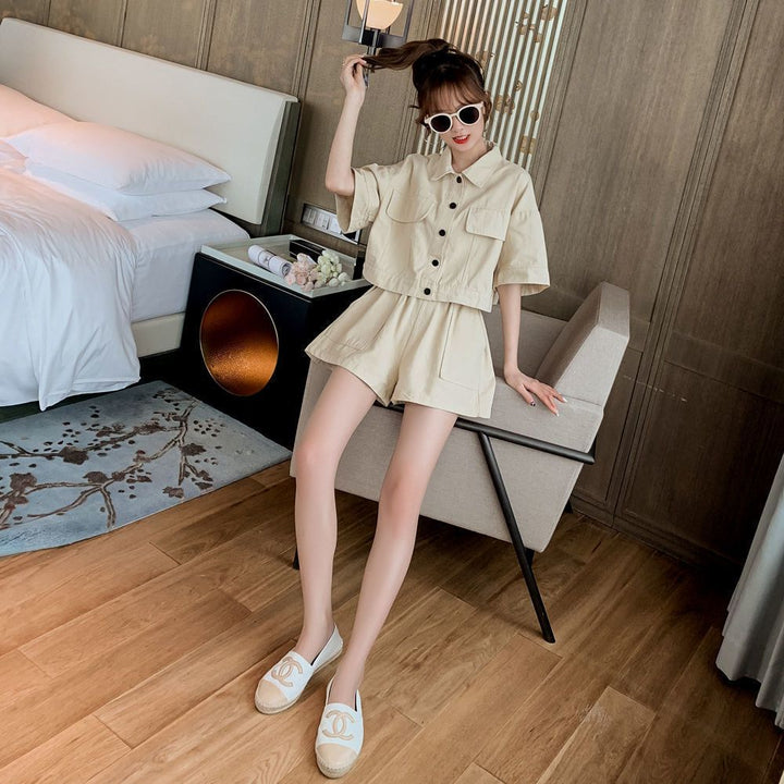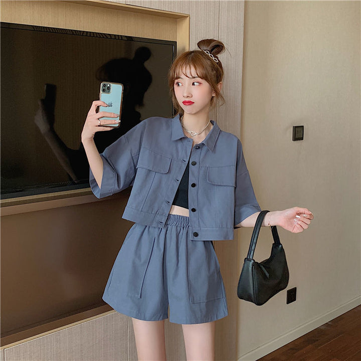 🧢 Muuv-It Summer Cargo Two-Piece Set – Casual Short-Sleeved Top & Utility Shorts